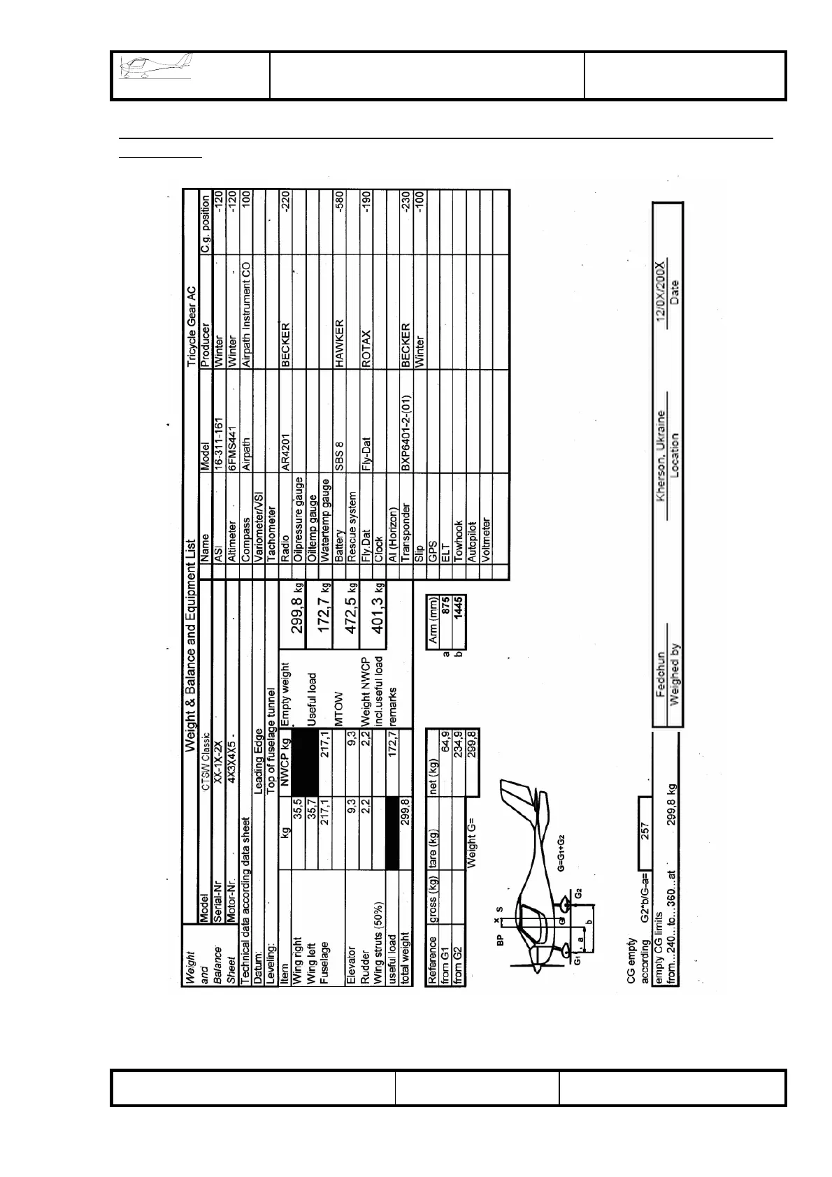 Sample of the Weight & Balance and Equipment List for aircrafts with BFU / LTF-UL