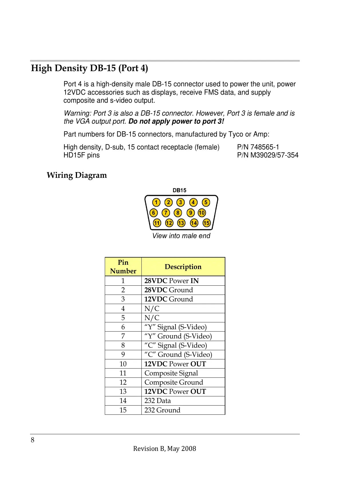 Port 4 is a high-density male DB-15 connector used to power the unit, power