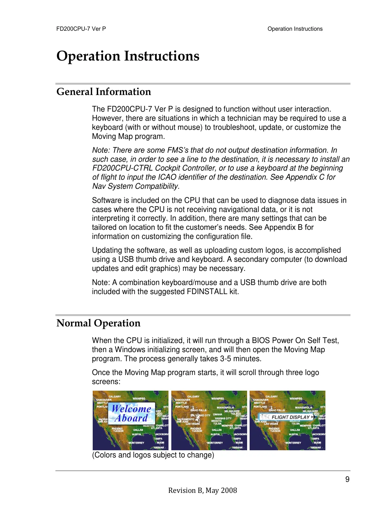 Once the Moving Map program starts, it will scroll through three logo