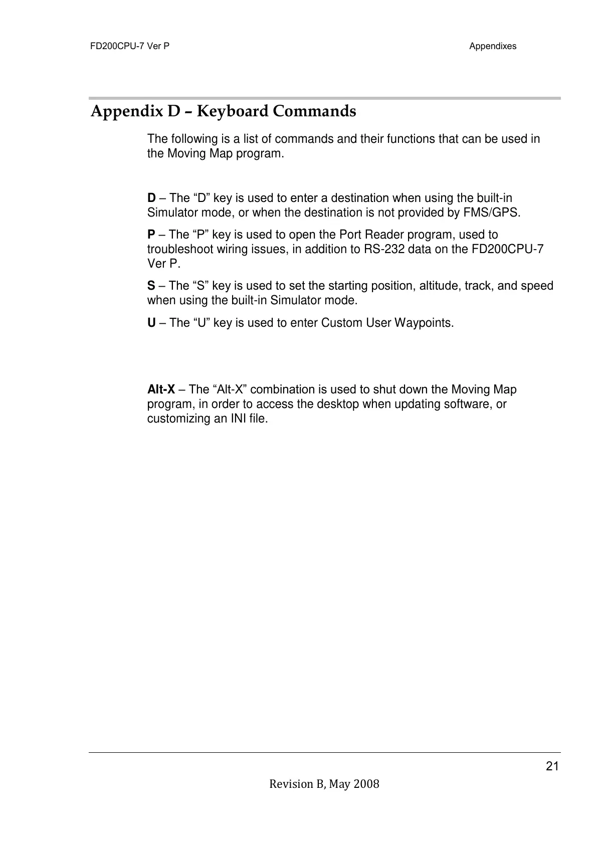 Alt-X – The “Alt-X” combination is used to shut down the Moving Map