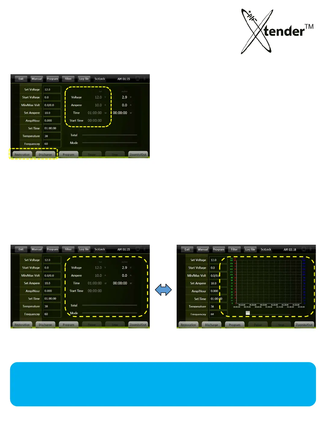 Time will start counting when Restoration or Discharge starts operation, and total AH (Ampere