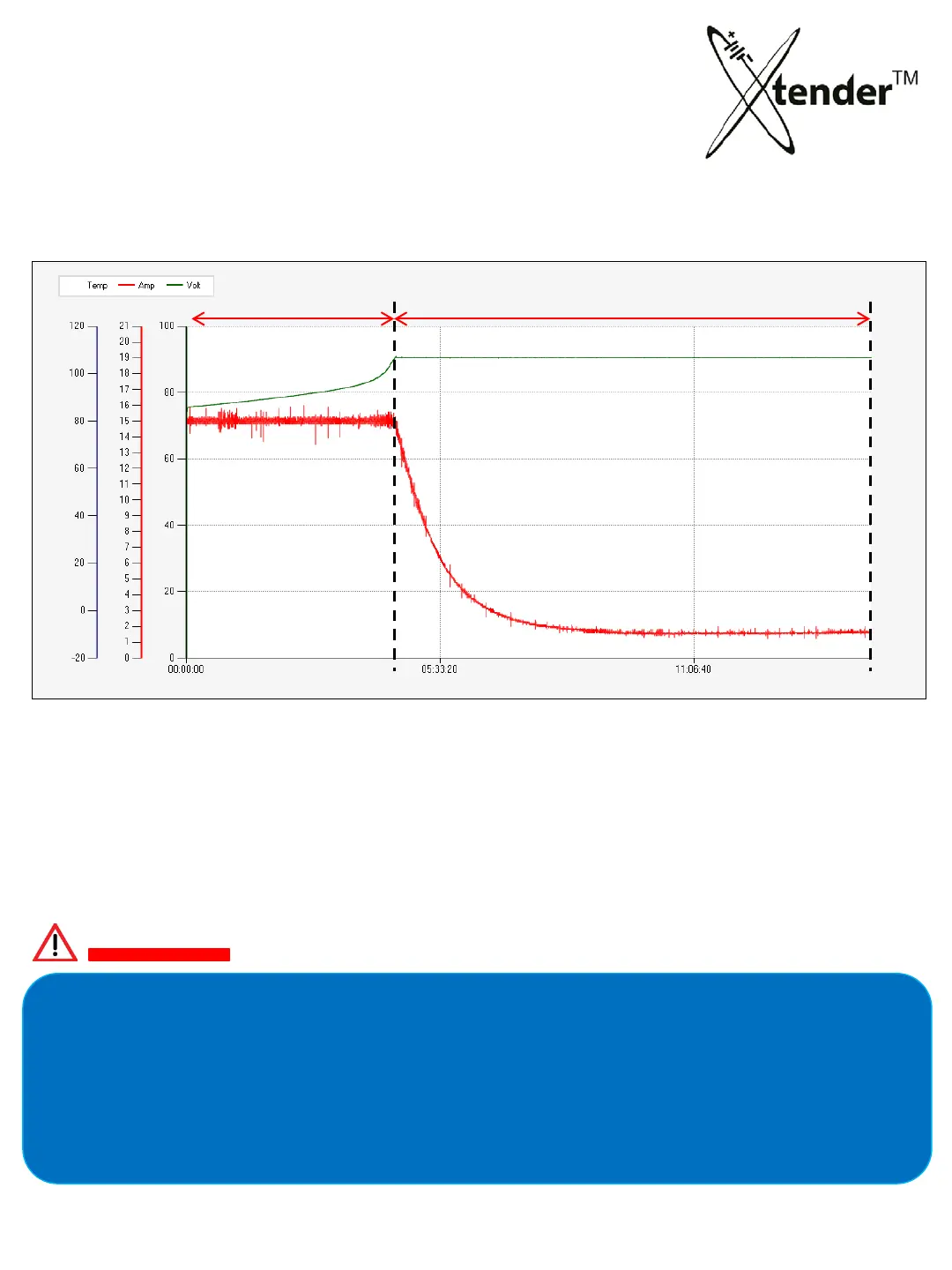 Xtender checks temperature of Battery every five(5) minutes and it will decrease Active Ampere by