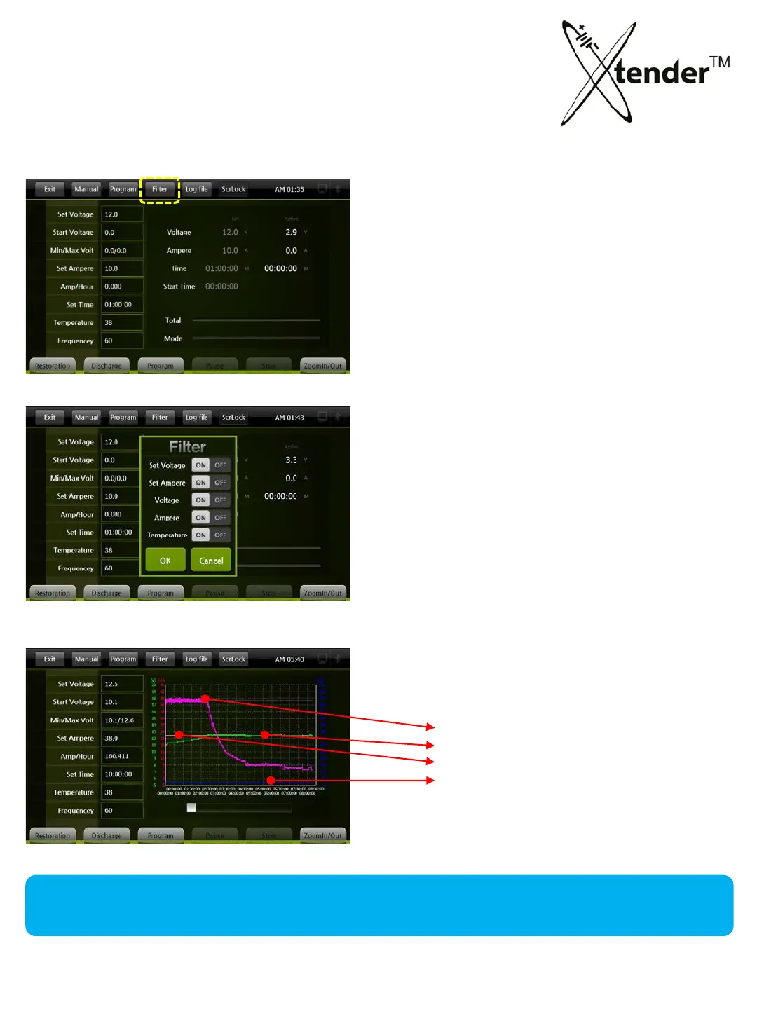 The Filter is useful to check the progress & the status of batteries during the operation