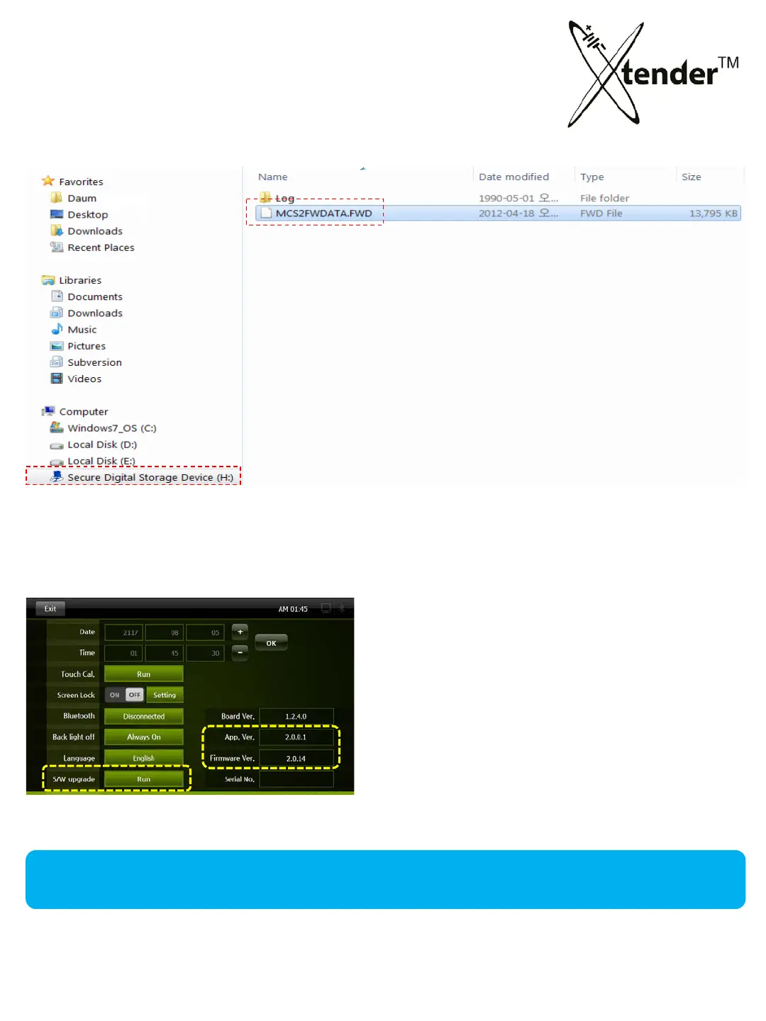 Install Xtender SD card into USB adapter and insert into pc usb drive. Copy the downloaded files