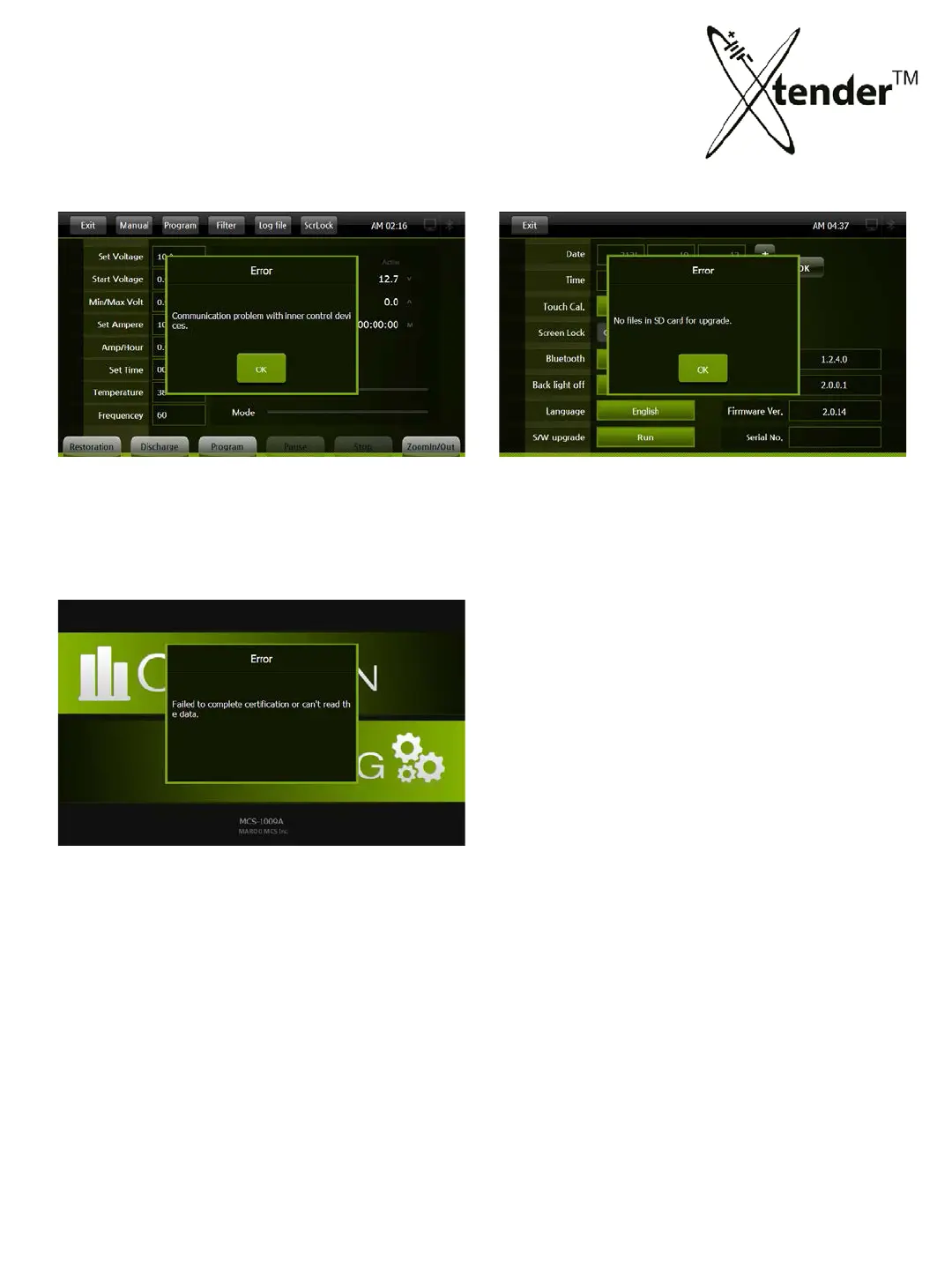 Xtender : ERROR MESSAGES