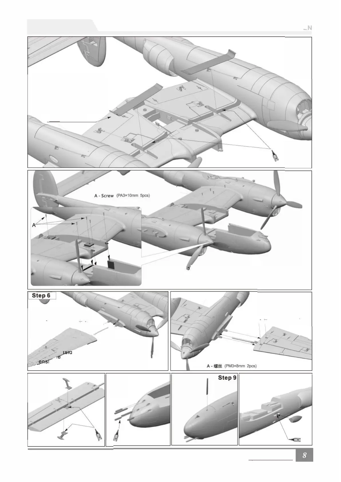 (PM3x8mm) screws, attach the outer wings to the