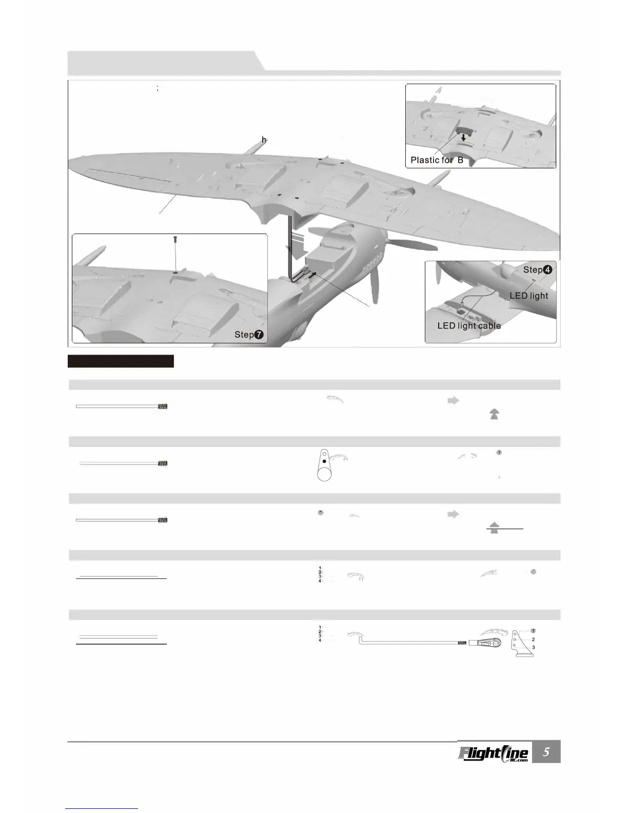 Insert the main wing plastic joiner pieces, A and B to the underside of the