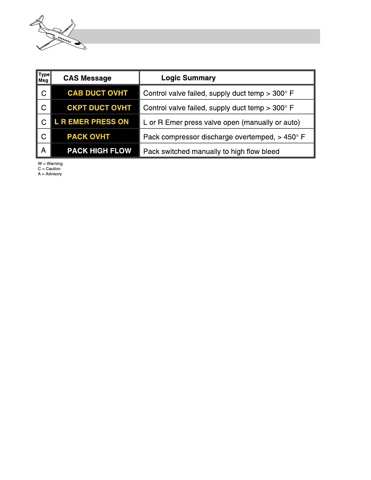 Table 11-1. AIR CONDITIONING SYSTEM CAS MESSAGE DATABASE