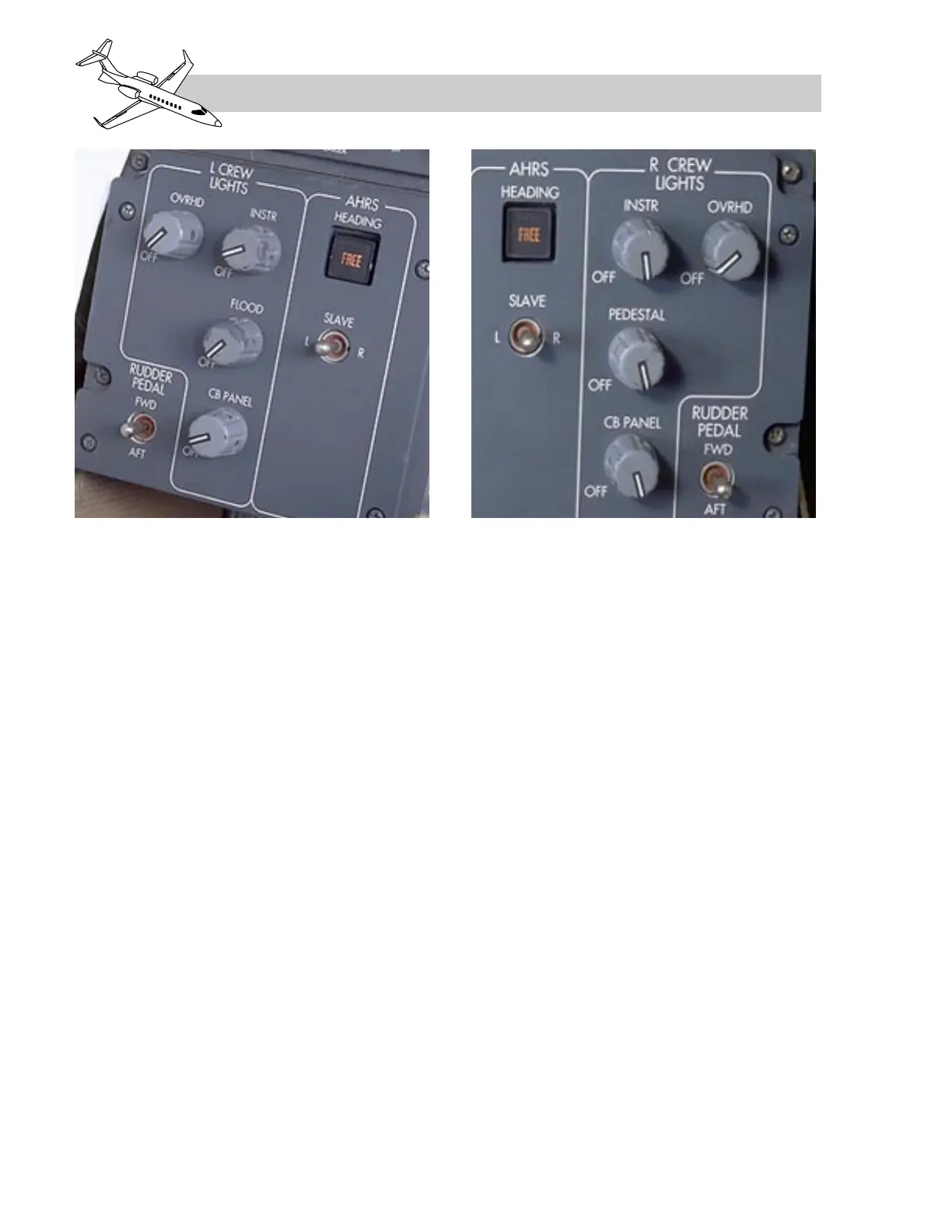 copilot’s R CREW LIGHTS panel.