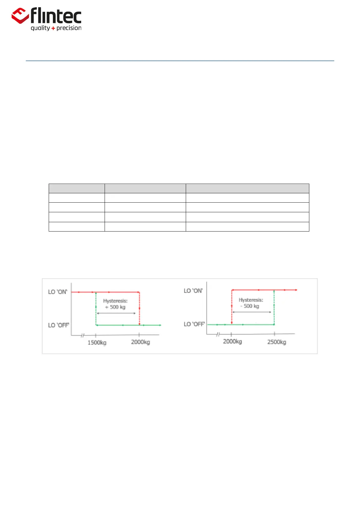 Examples of the switching actions for a Set-Point value of 2,000kg.