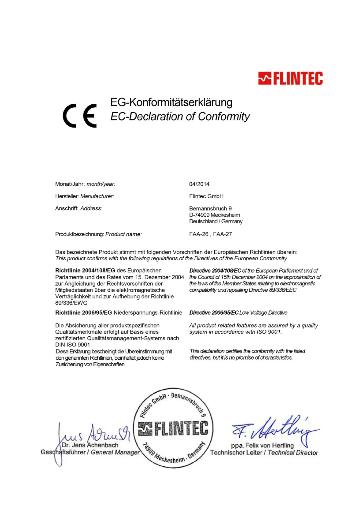 Flintec FAA-27 - 2 Declaration of Conformity