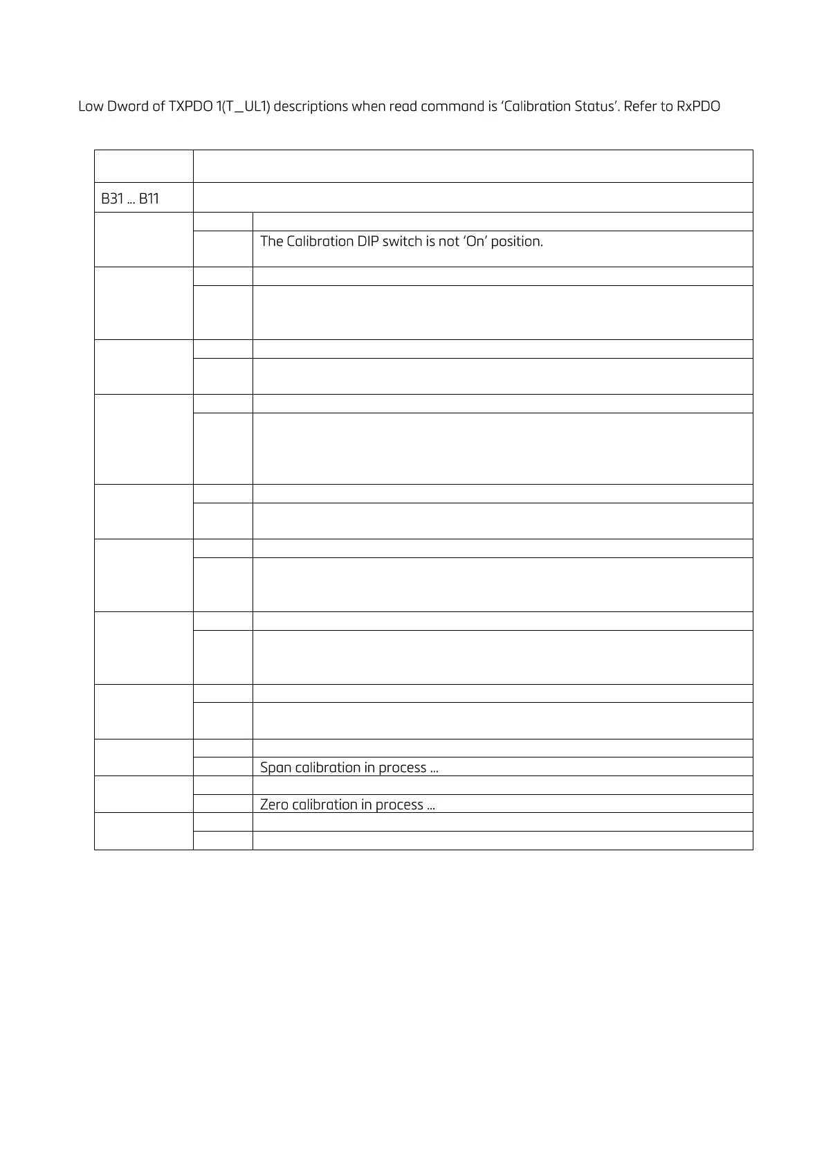 Table 13.2 - Calibration status