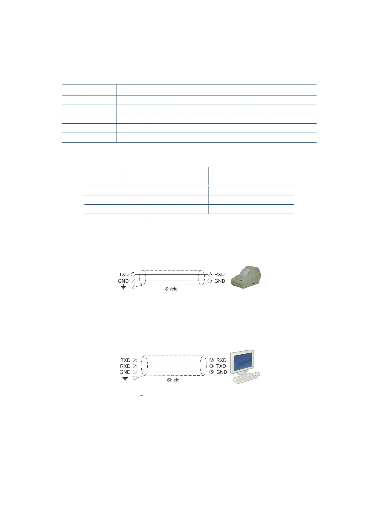 Figure 4.9 2 wire RS 232C connection with a printer or PC