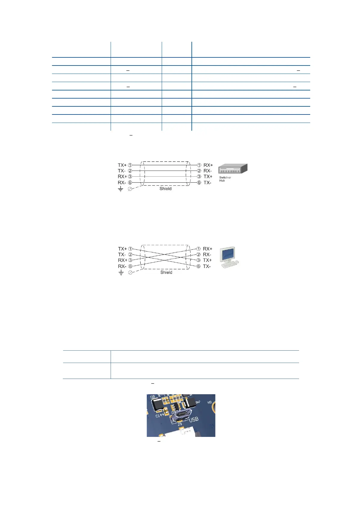 The usage of the on-board USB 2.0 and its specifications are shown in the Table 4-8. You need the mini-USB