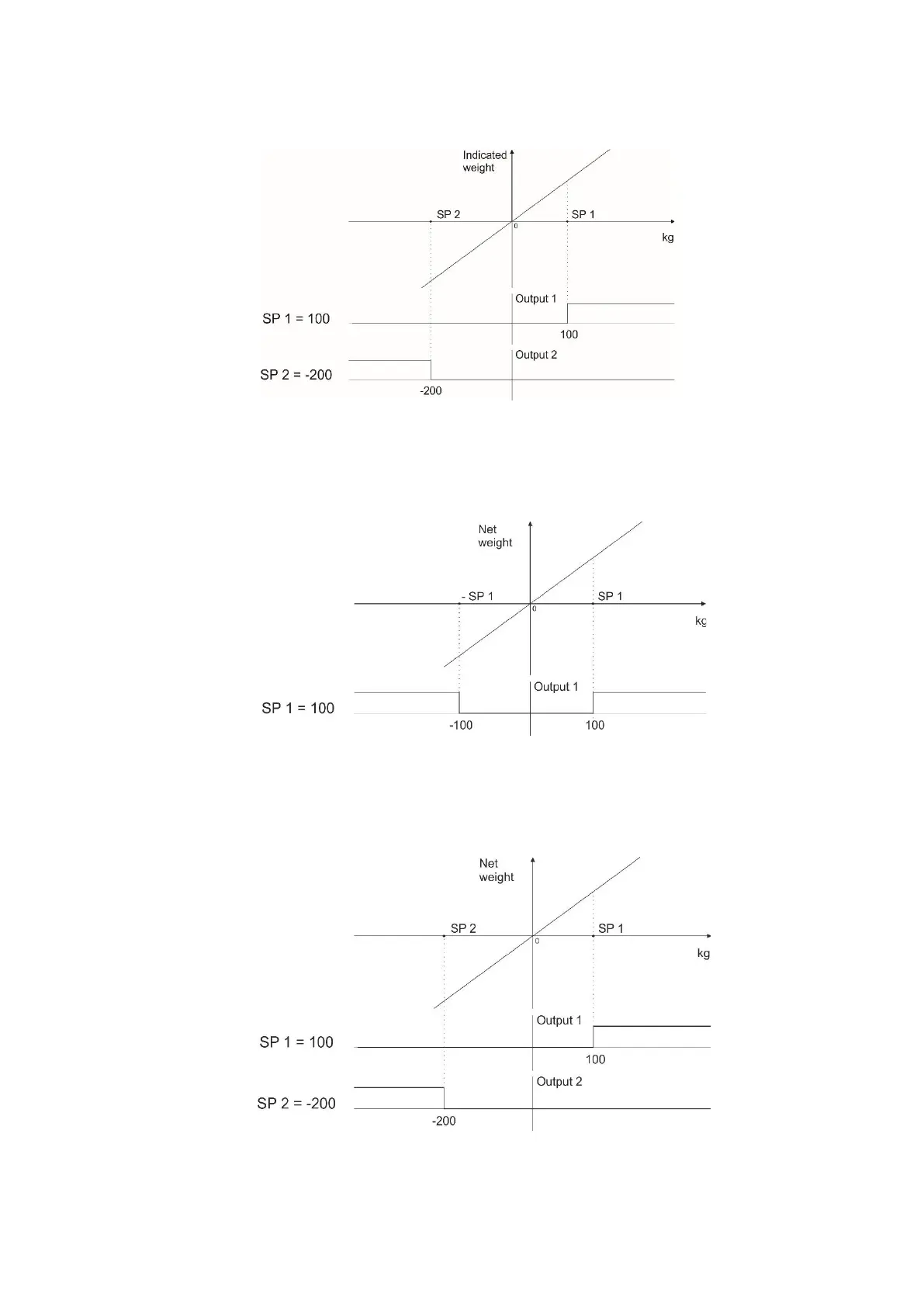 The digital output is activated with comparing the set point value and indicated weight value as shown in the