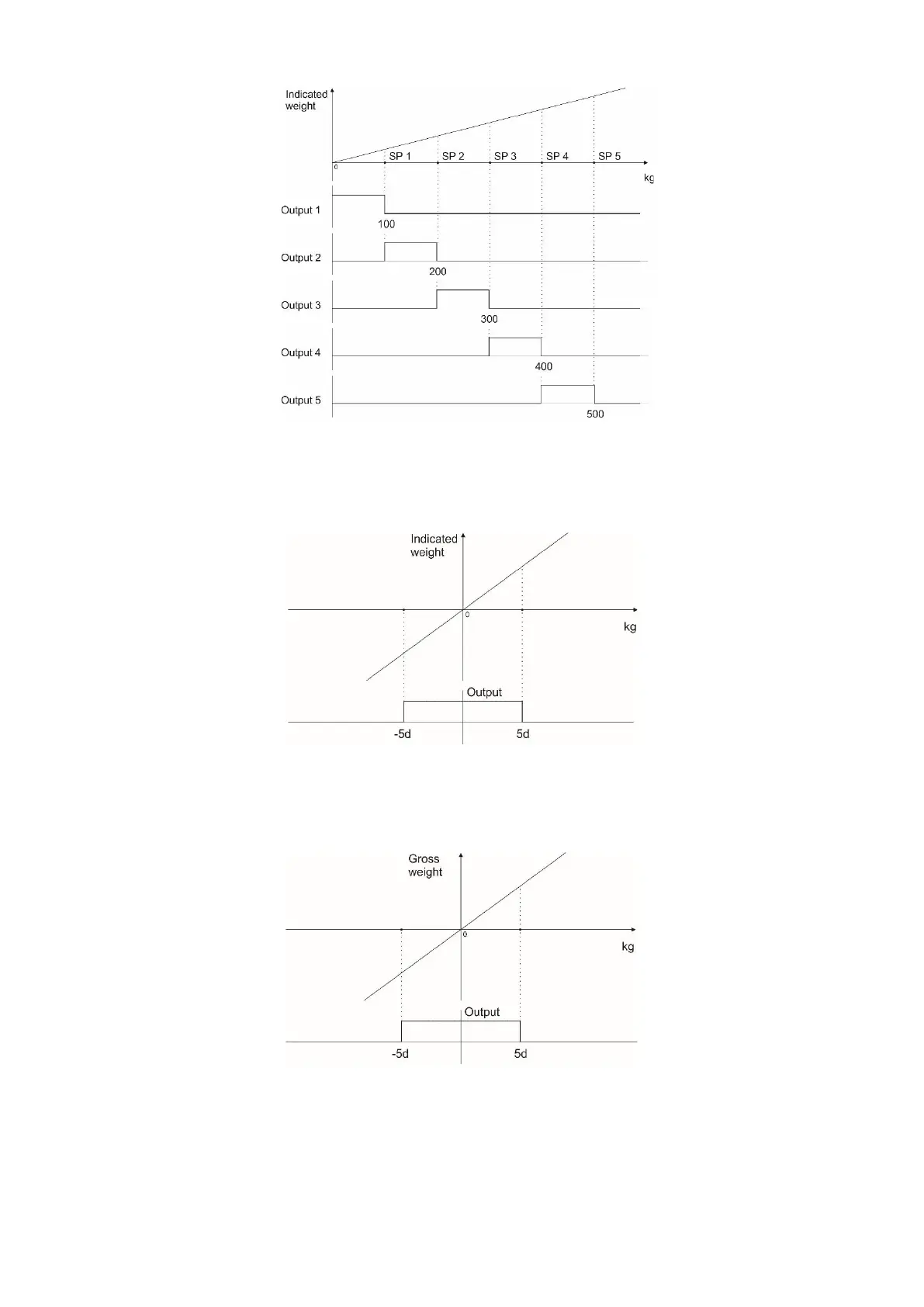 The digital output is activated if the absolute indicated weight value is in the zero range. Refer to