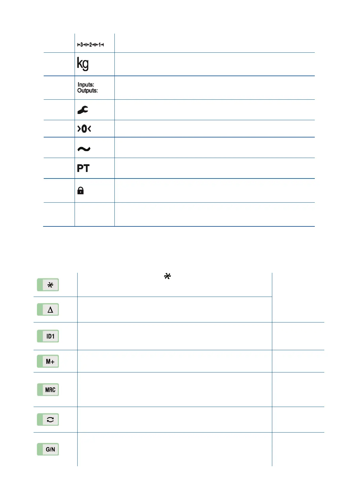 Temporary gross weight indication Press this key to read the gross