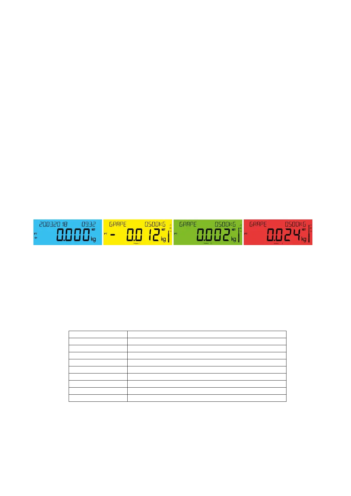 The multicolor backlight feature provides operational comfort and reduces operator mistake. The weighing