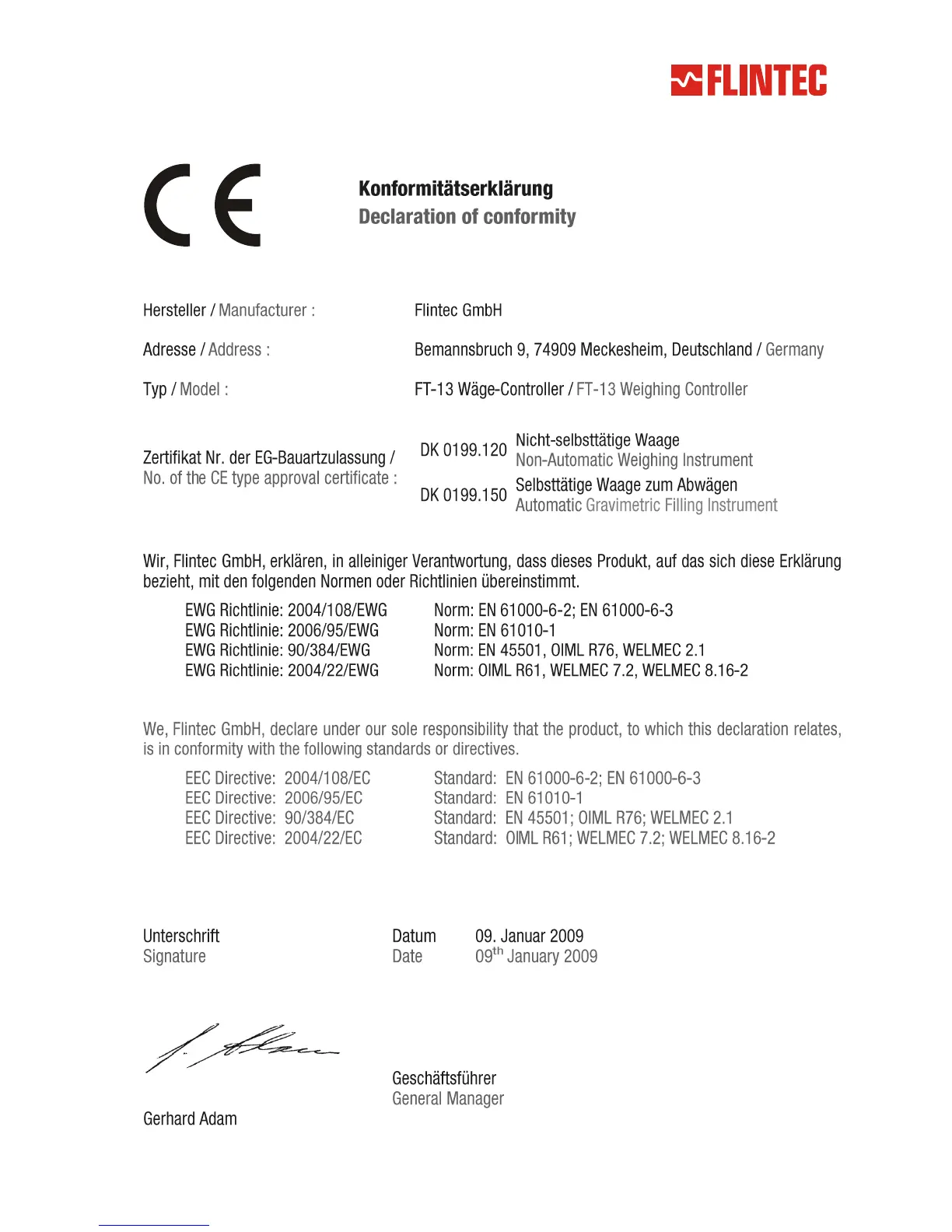 Flintec FT-13 - 2. Declaration of Conformity
