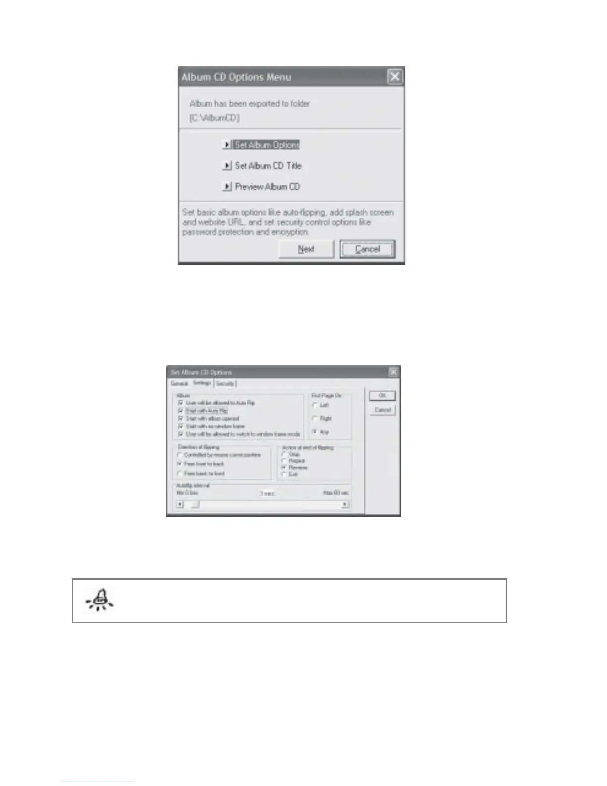 Fig 7.7.4 Set Album CD Options - Settings Dialog Box