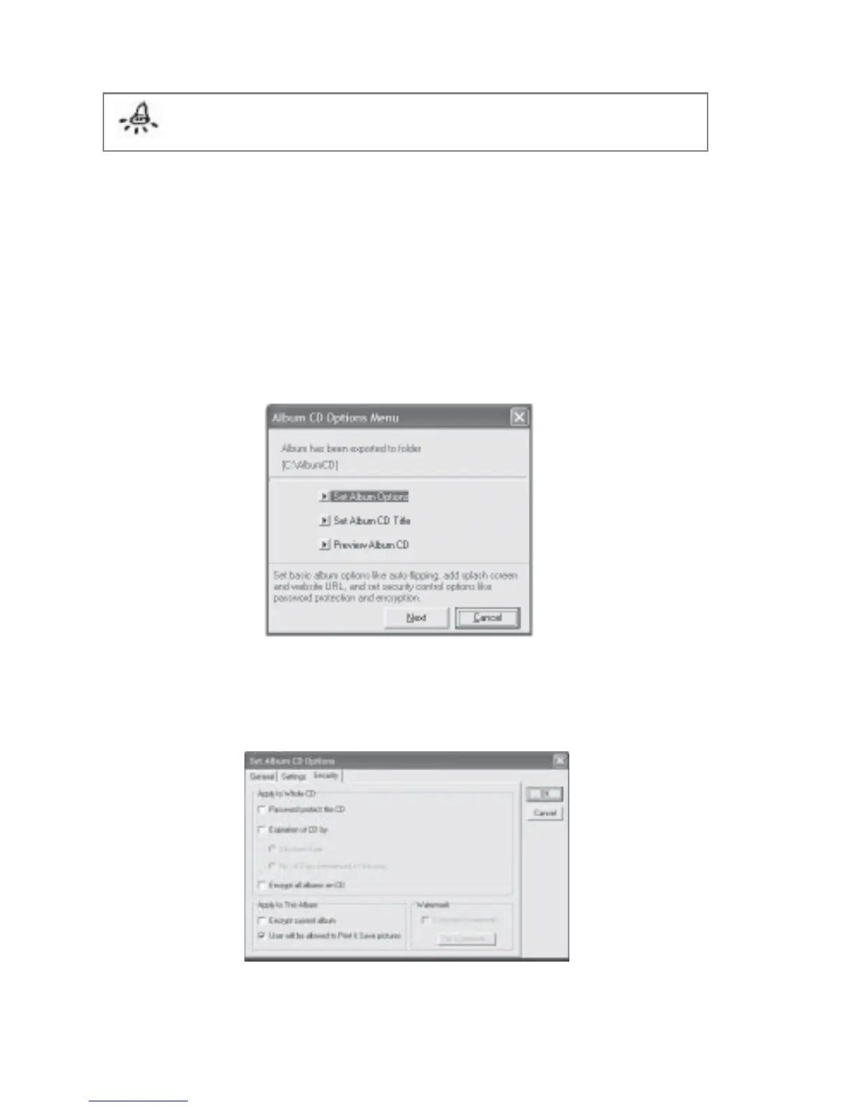 Fig 7.10.2 Set Album CD Options - Security Dialog Box