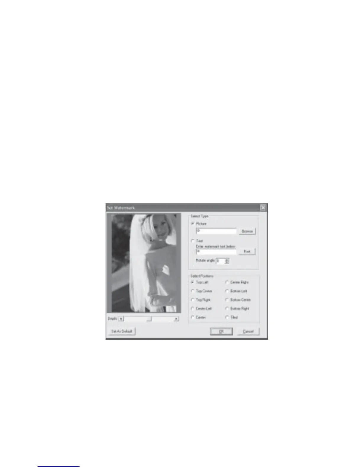 To set the picture or text watermark for use in other albums, click the Set As Default