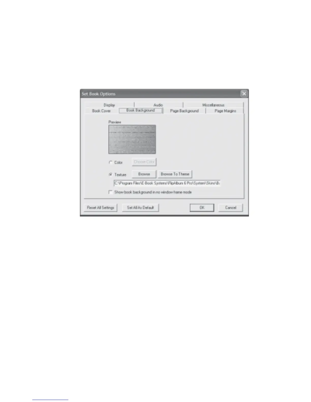 Figure 8.2.2 Set Book Options Book Background Dialog Box