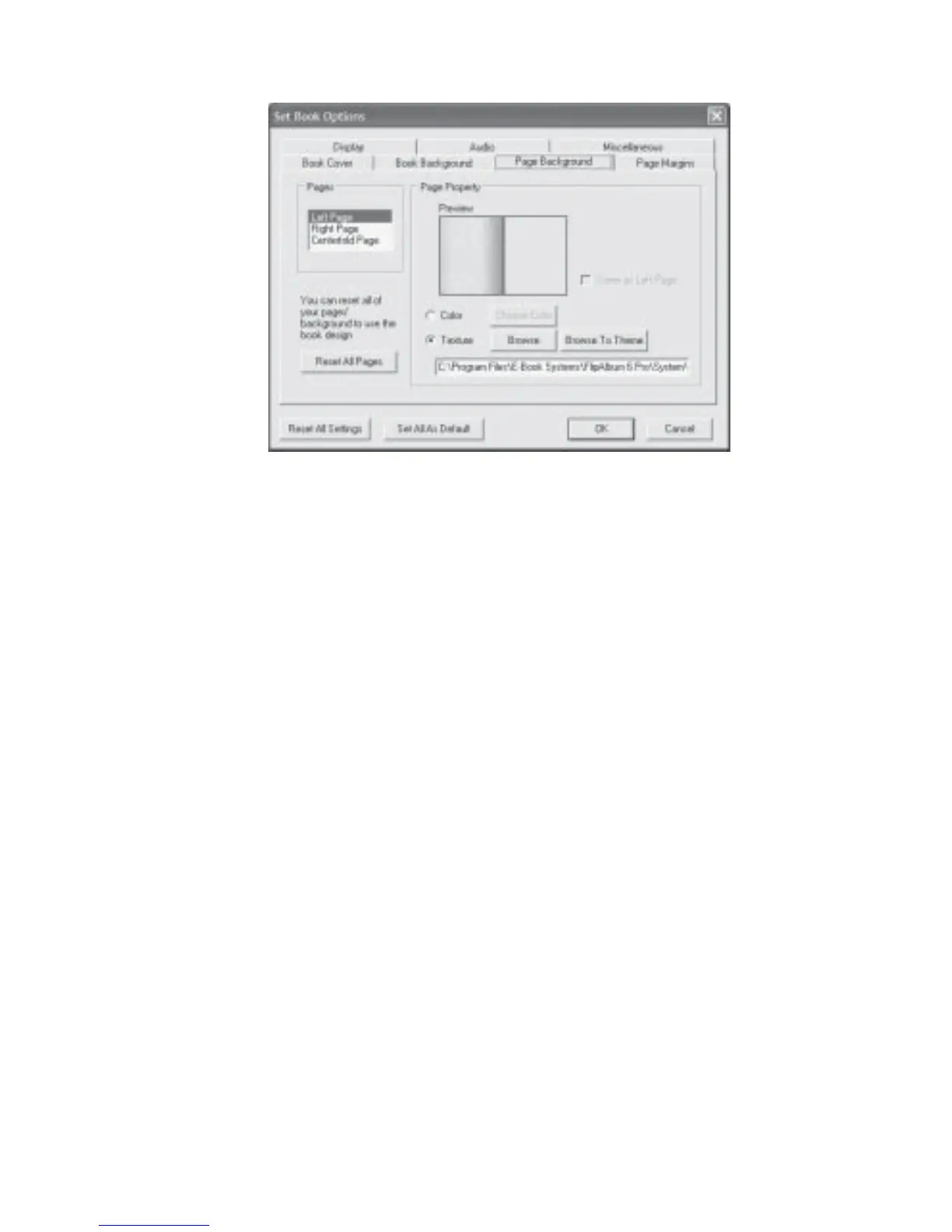 Figure 8.2.3 Set Book Options Page Background Dialog Box