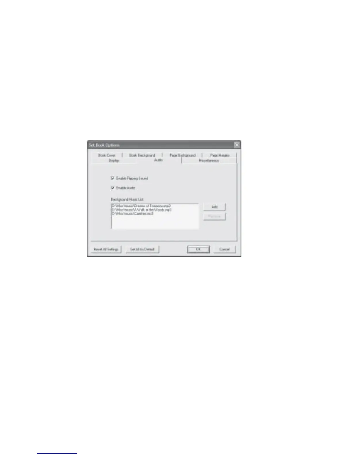 Fig 8.2.7 Set Book Options Audio Dialog Box