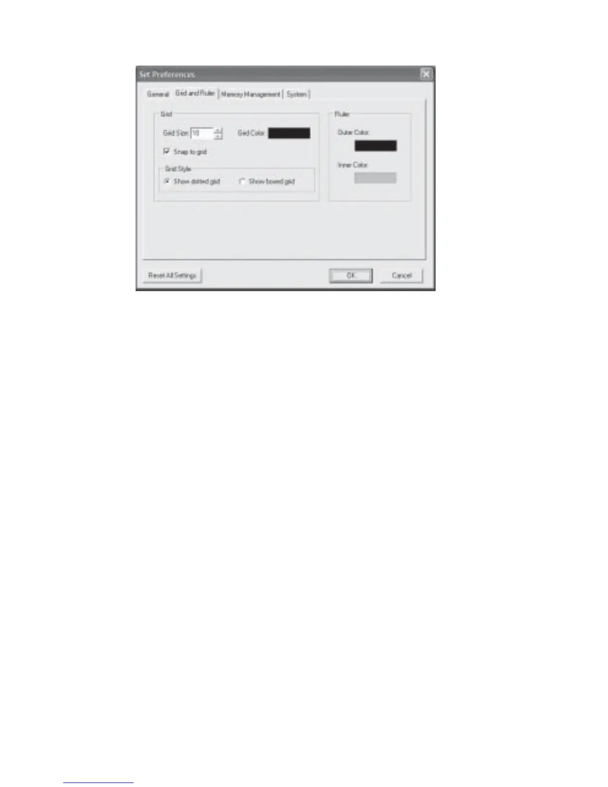 Fig 8.3.2 Set Preferences Grid and Ruler Dialog Box