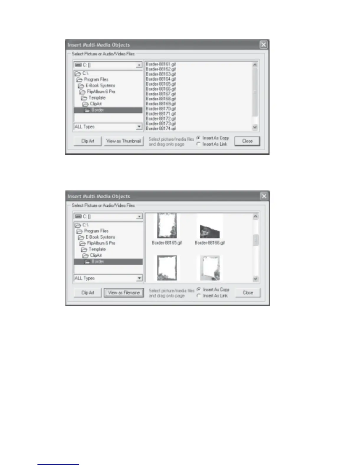 Figure 3.5.2 Insert Multi-Media Objects (View as Thumbnail)