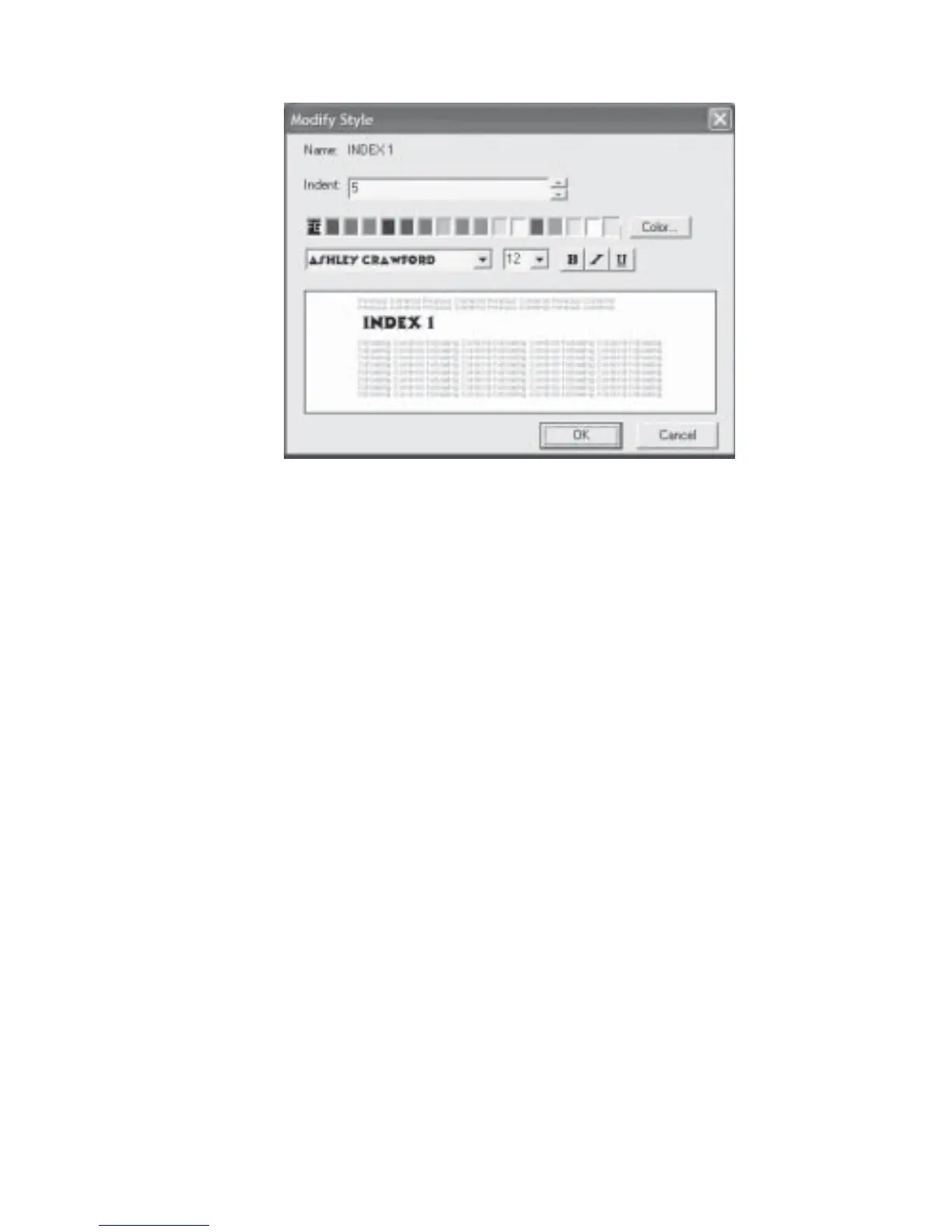 Fig 4.1.6 Customize Index - Modify Style Dialog Box