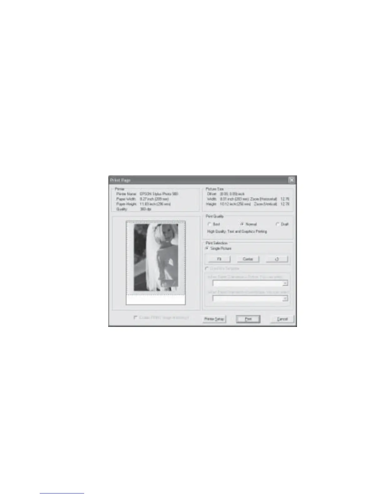 5. Click OK to print or click Printer Setup to change printer settings.