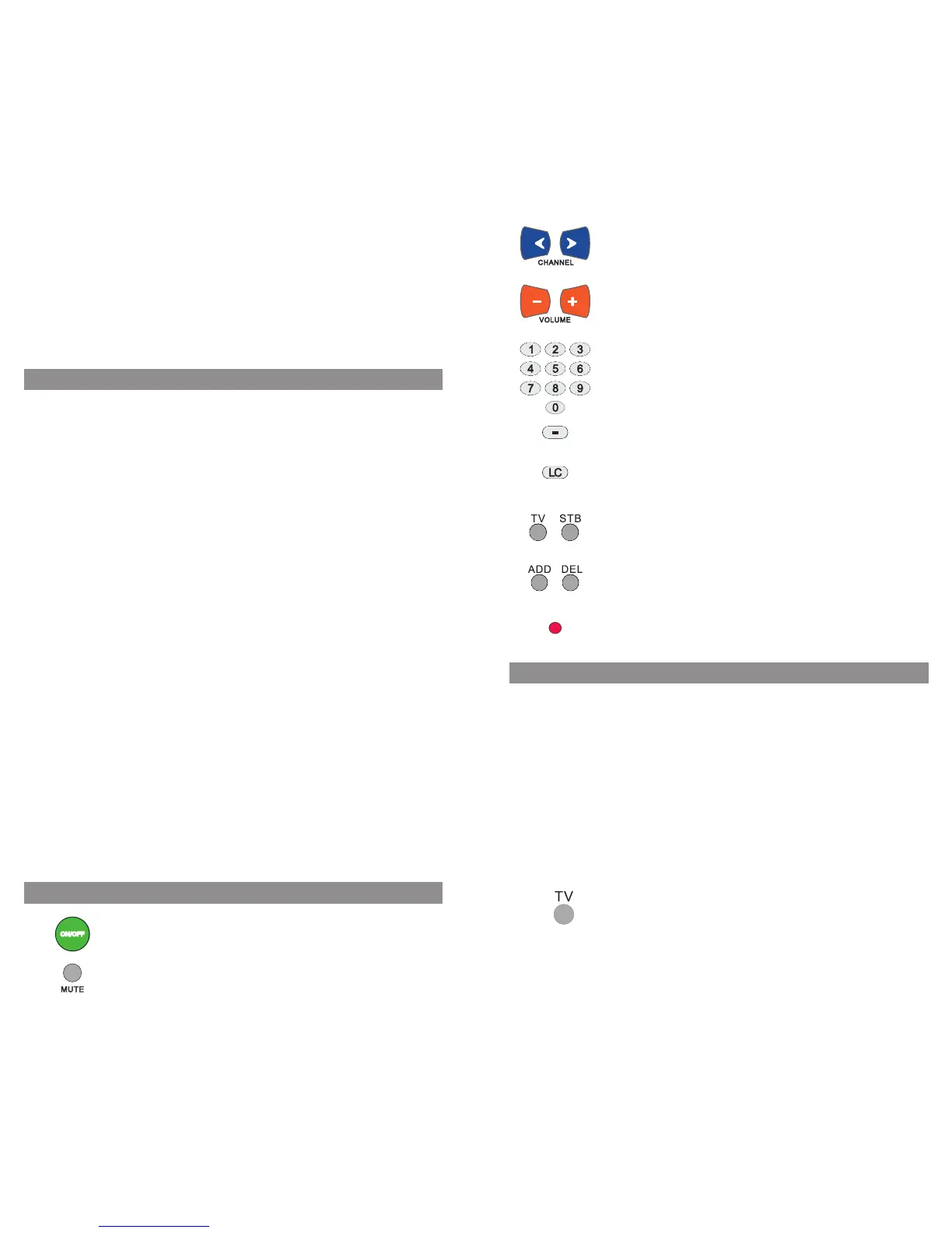 ON/OFF: controls both the TV and STB.