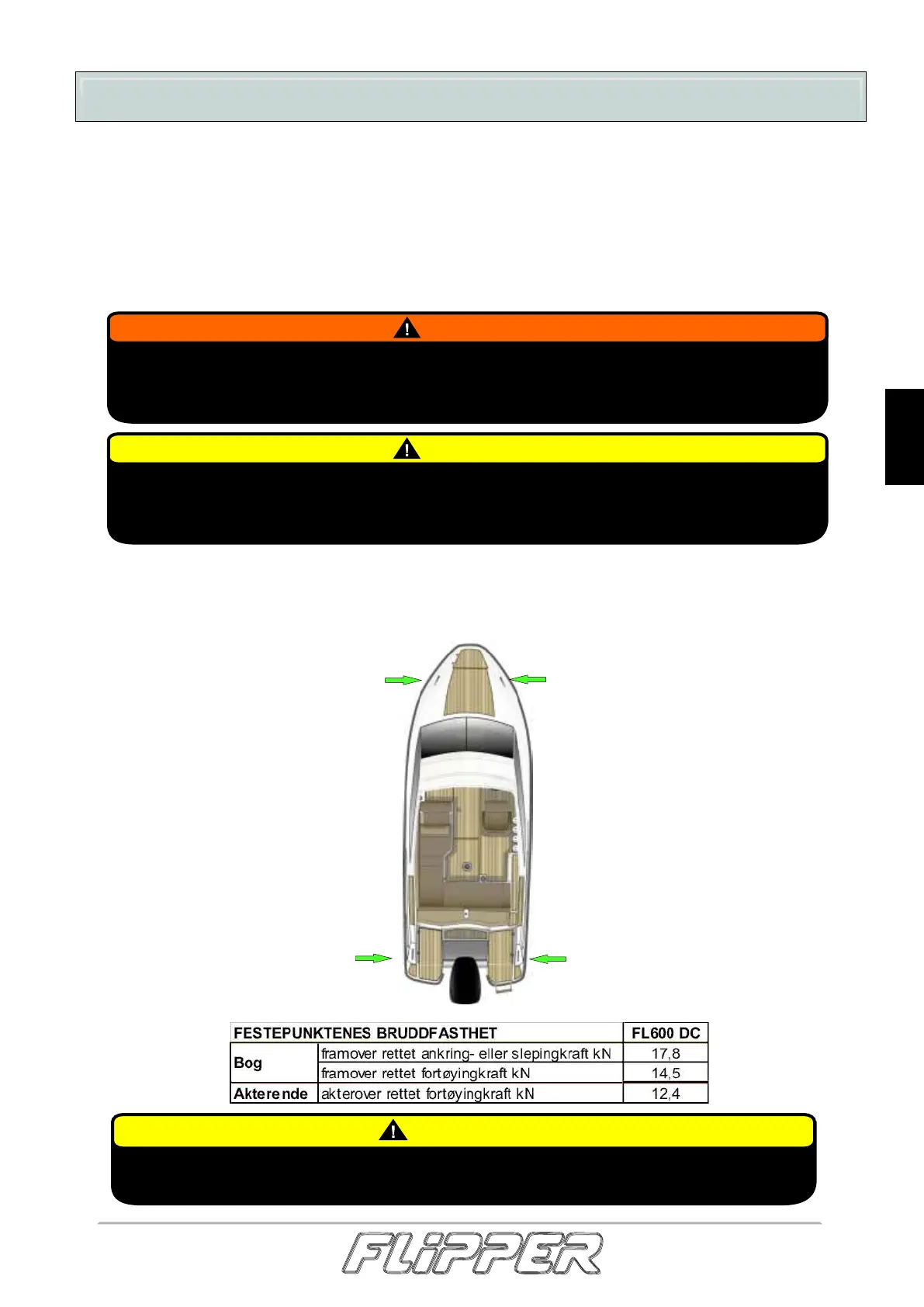 Det er eierens/brukerens ansvar å sikre at fortøyning, slepe- og ankertau, ankerkjetting og ankere er