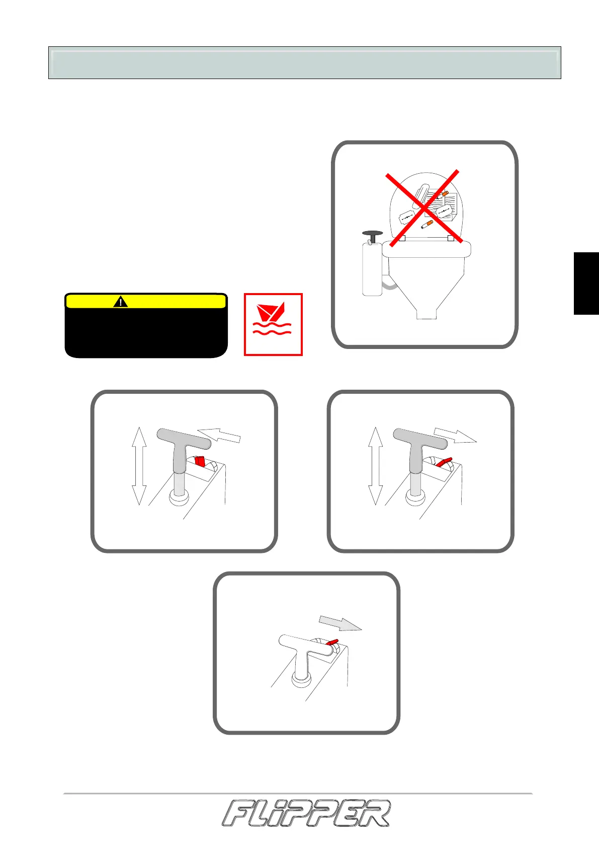 Ikke kast søppel i toalettskålen. Systemet kan blokkeres og føre til skade på båten