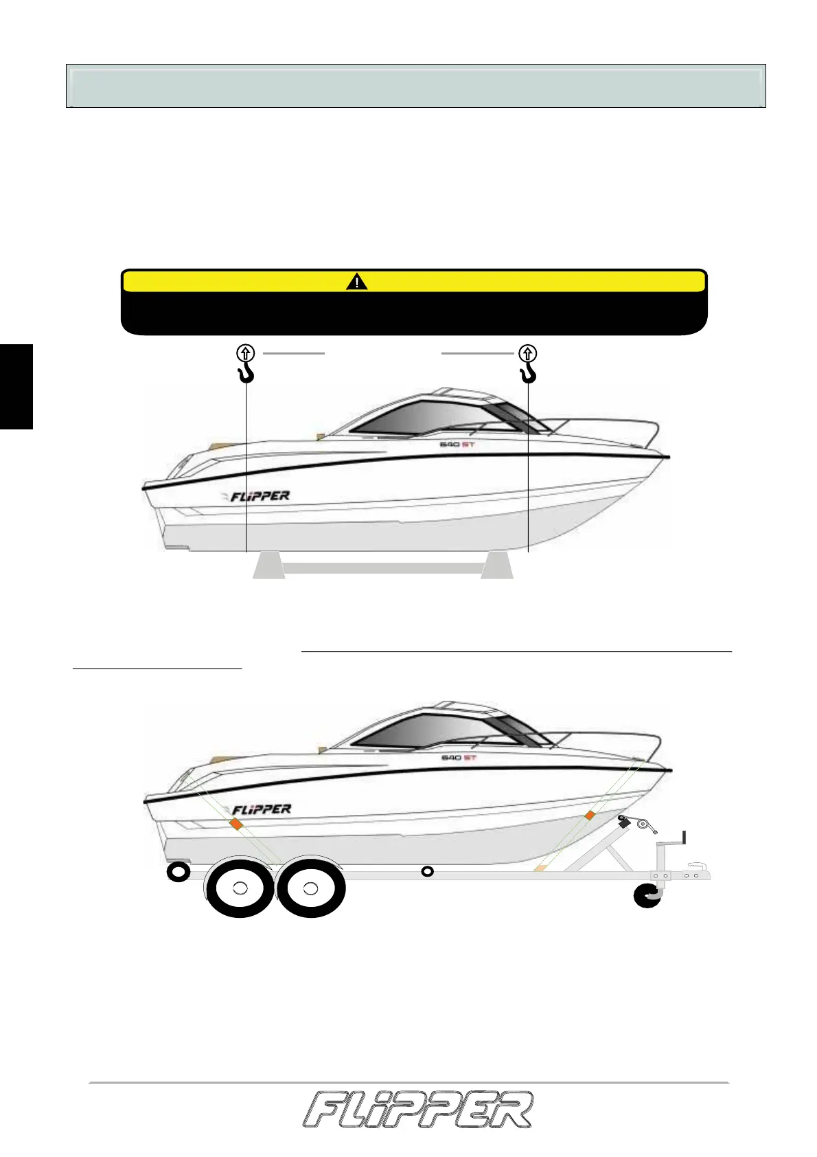 båten i å bevege seg sideveis. Fest transportstroppene. Ikke la det være løse gjenstander eller overlast
