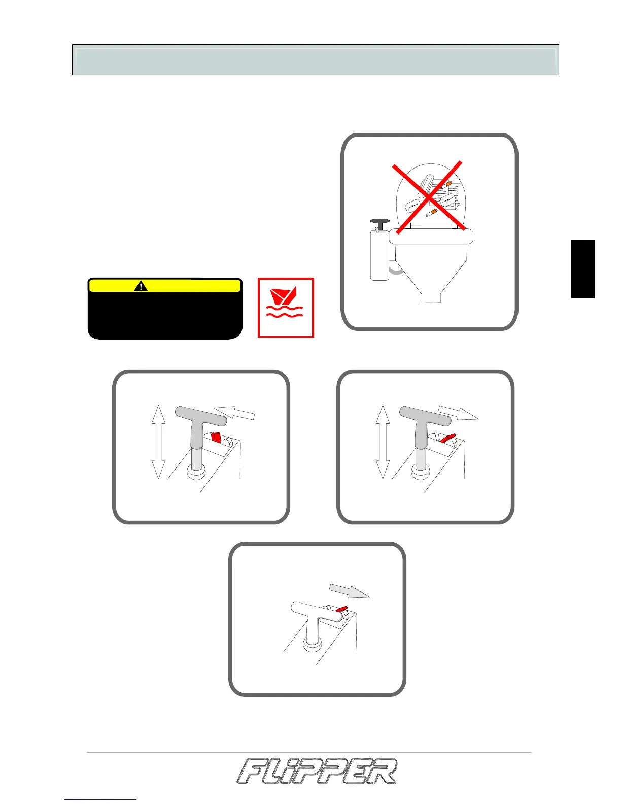 Ikke kast søppel i toalettskålen. Systemet kan blokkeres og føre til skade på båten