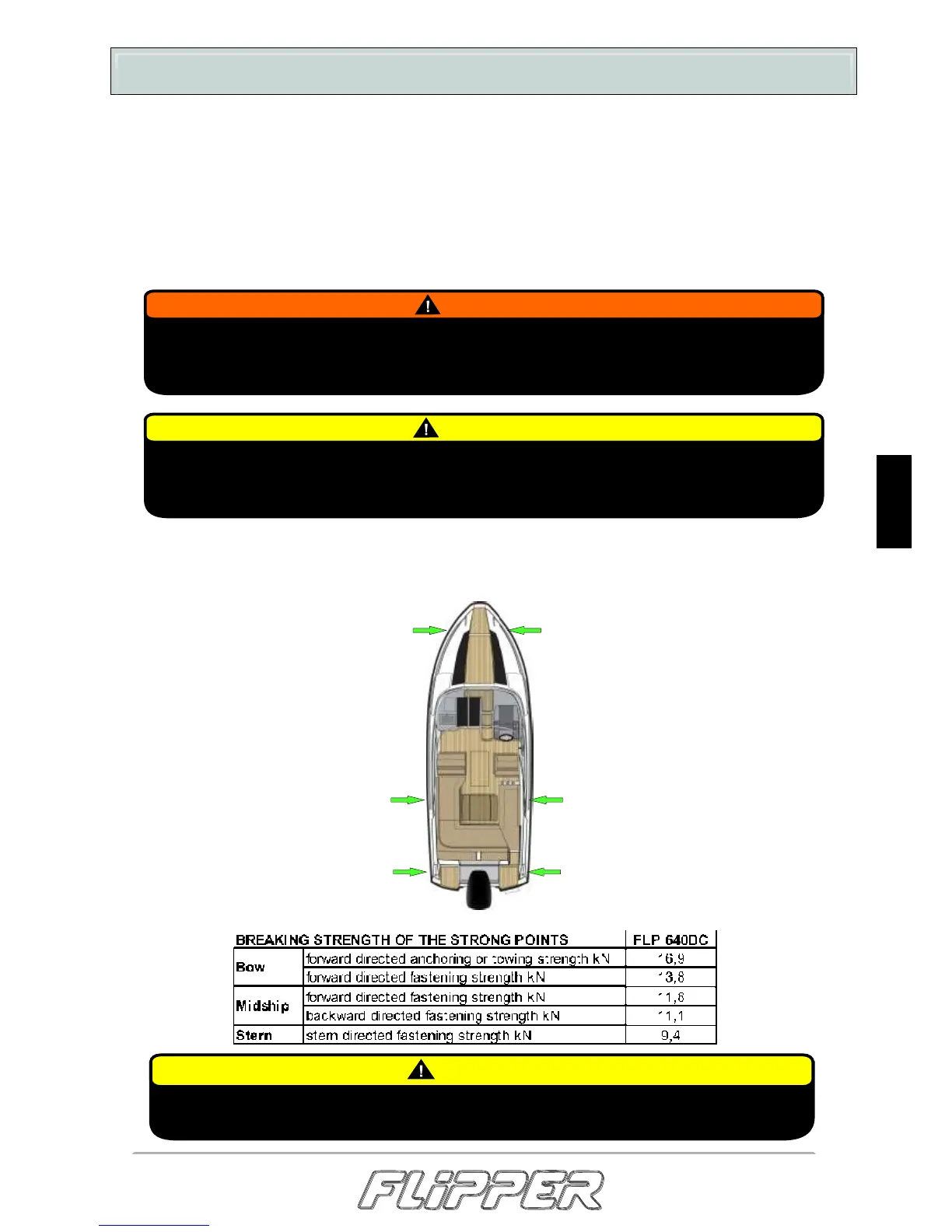 depth. In the picture are shown the strong points to be used when anchoring, mooring or towing.