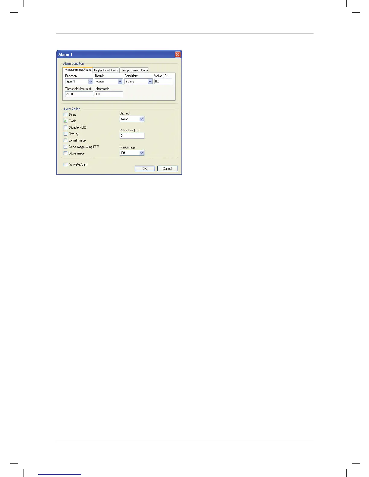 tipo de alarma haciendo clic en una