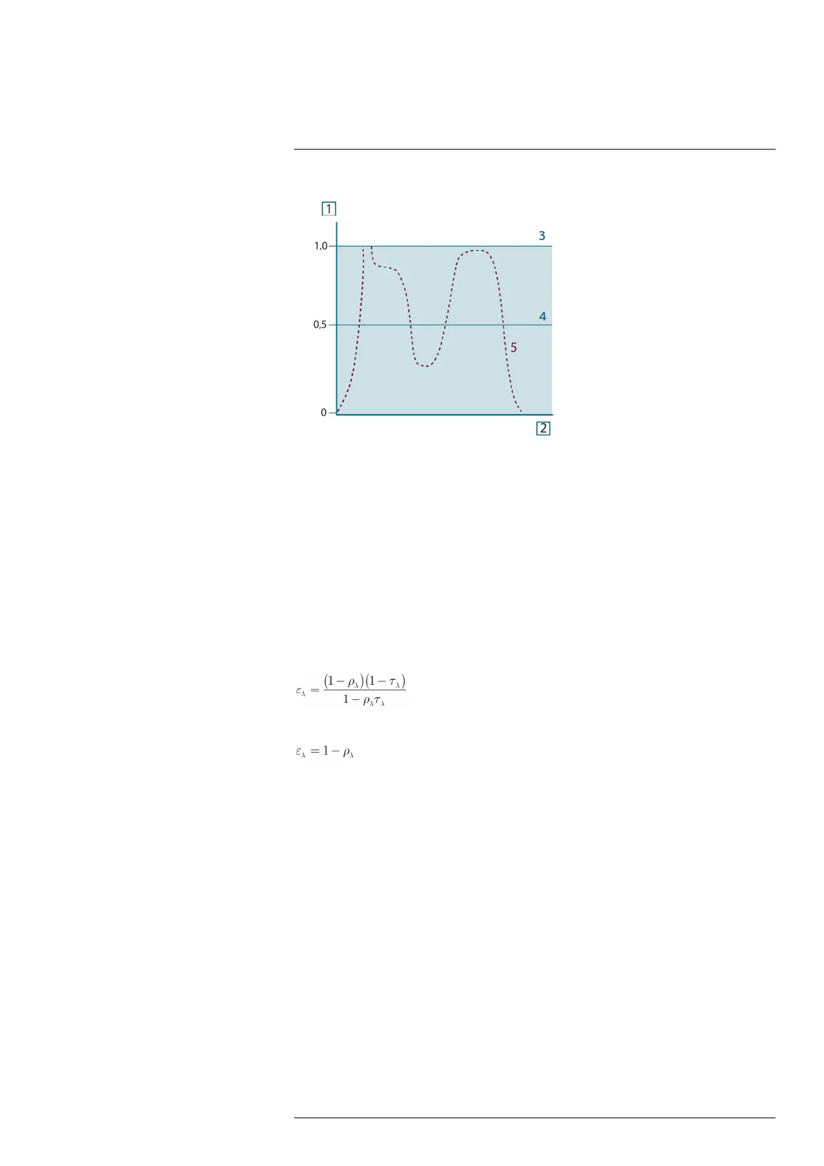 Figure 15.9 Spectral emissivity of three types of radiators. 1: Spectral emissivity; 2: Wavelength; 3: Black-
