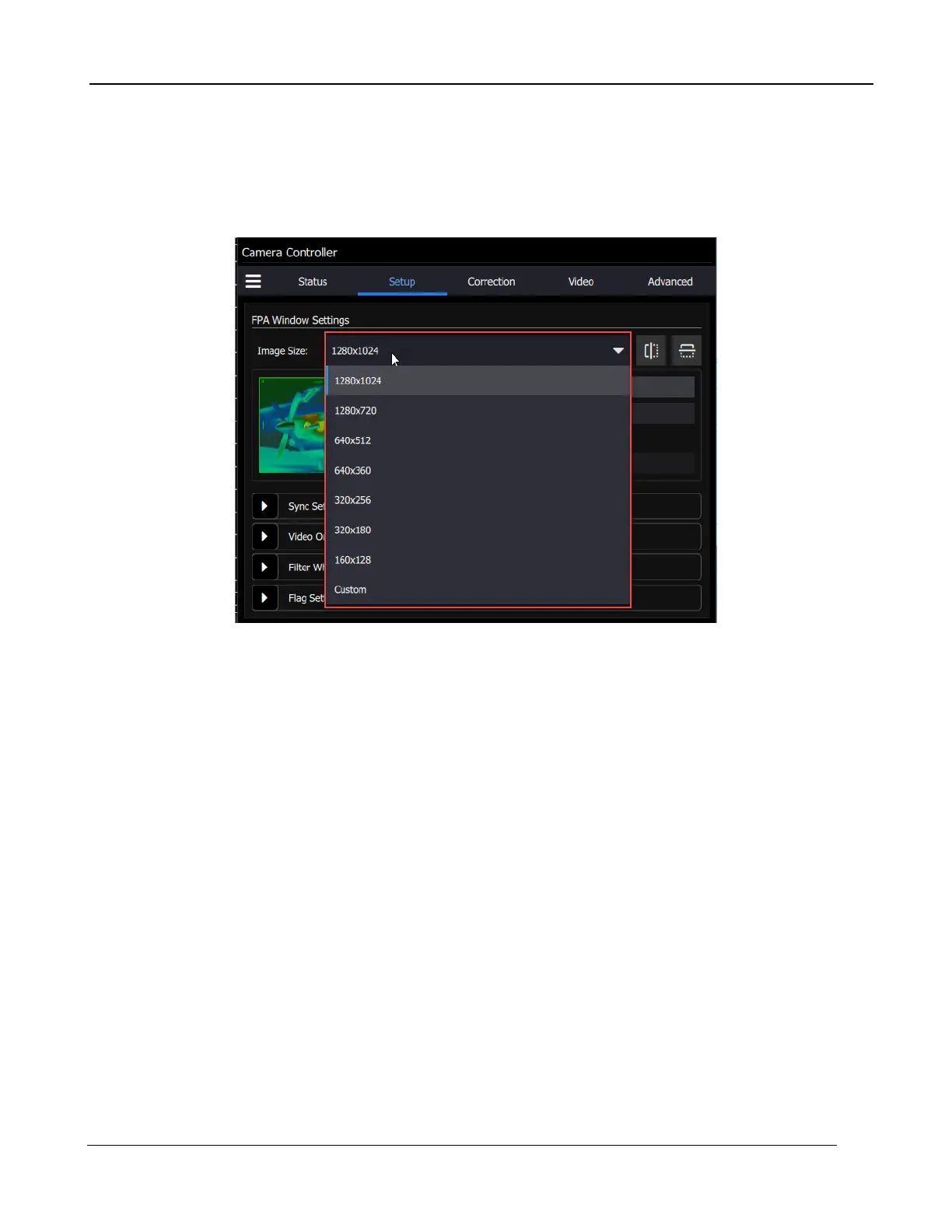 The FPA Window Setting menu allows the user to control the size of the FPA Window, as well as flip