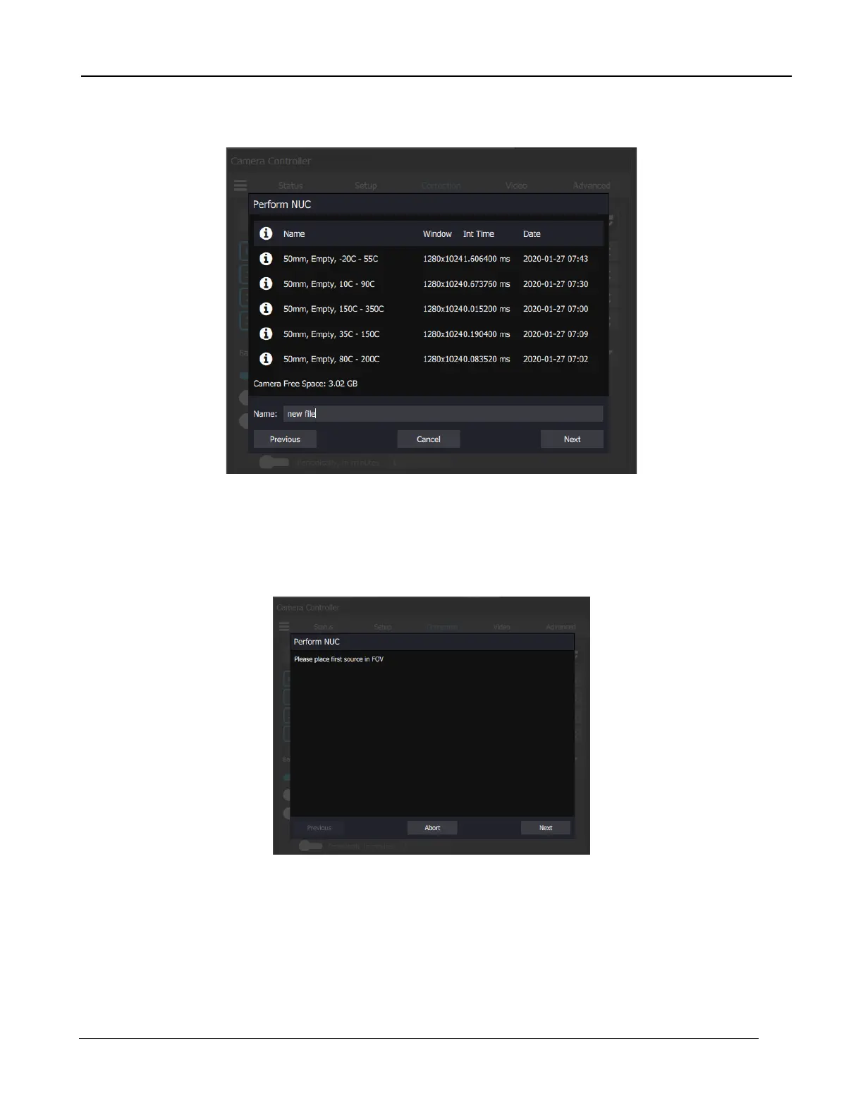 few status messages. If using external blackbodies, you will be prompted. After each step, click