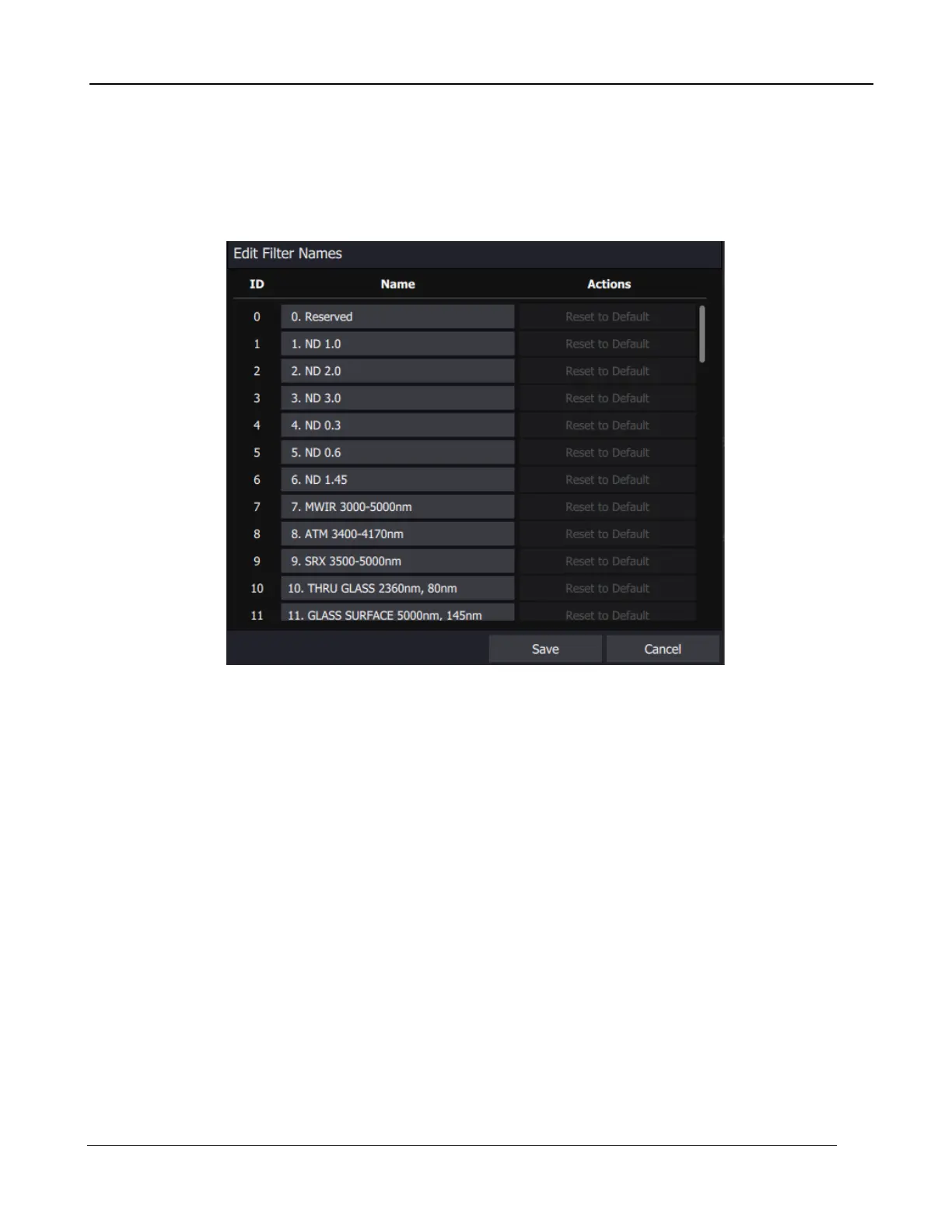 allows the user to manually edit the names of the filters associated with each Filter ID. The user can