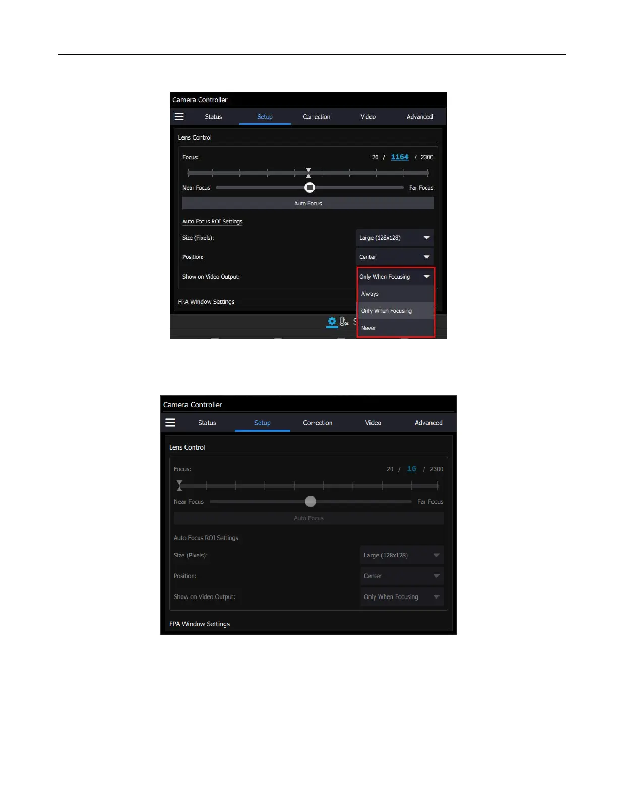 Here is the GUI view for the scenario where the on/off switch on the lens is turned to off or manual