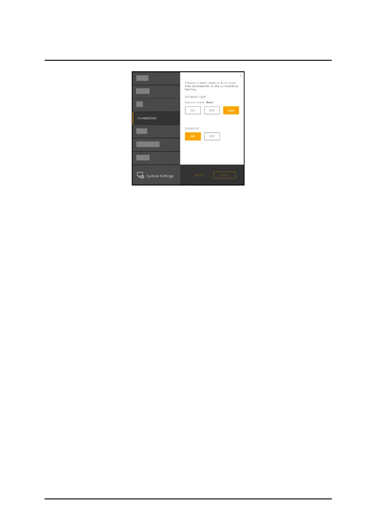 • Auto (default): The IR LEDs turn on or off according to surrounding lighting conditions. For example,