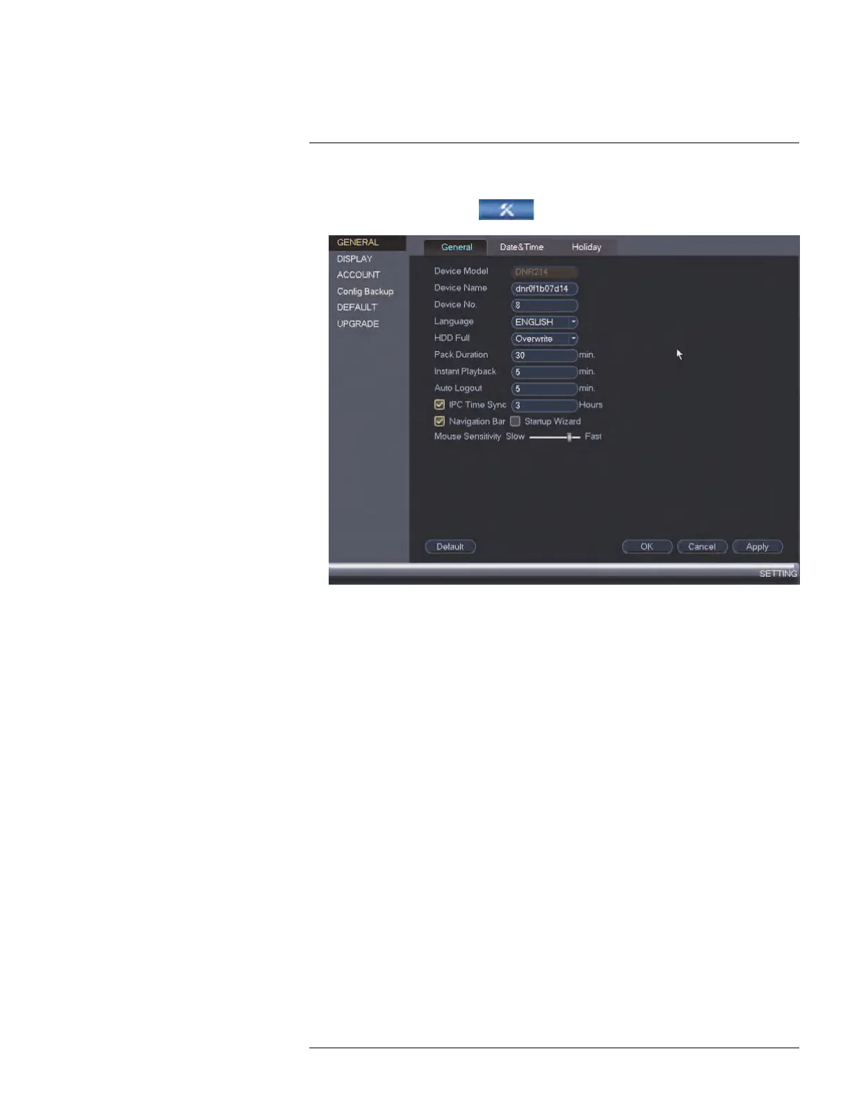 • Auto Logout: Select the idle time (in minutes) before the system will logout the cur-