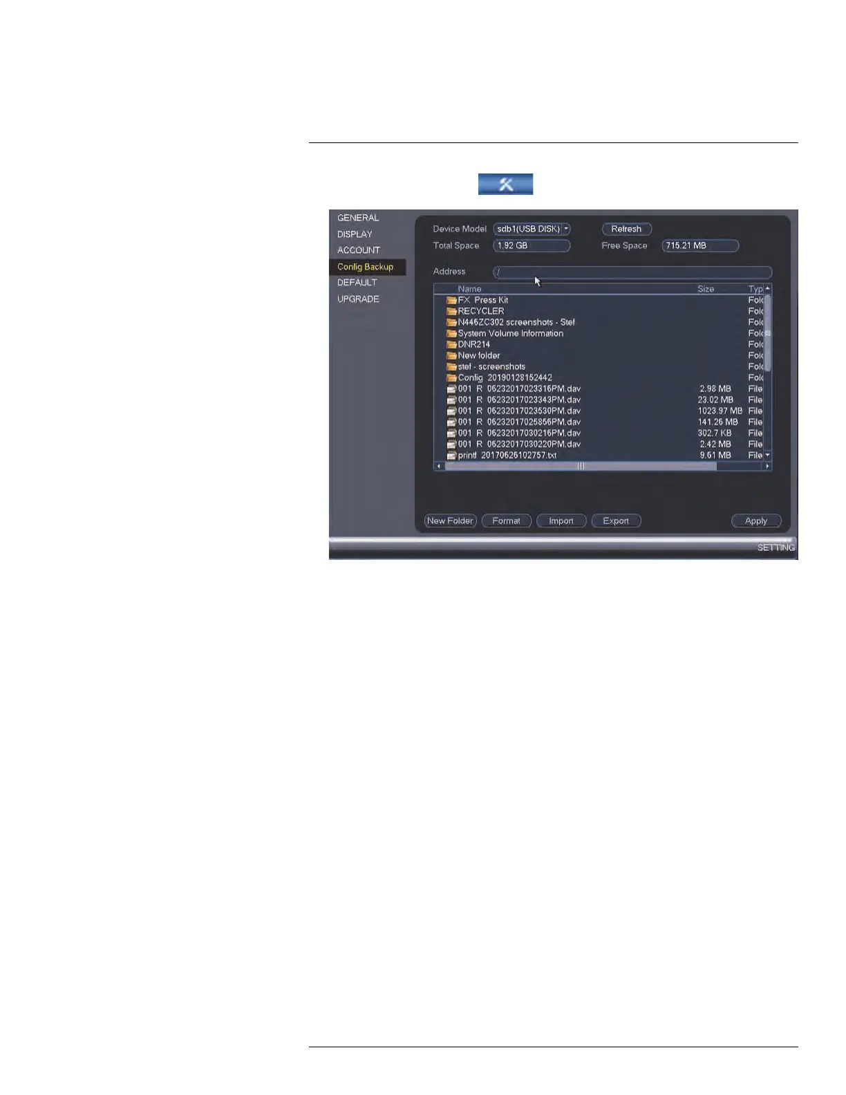 1. Insert a USB flash drive (not included) with a saved system configuration into one of