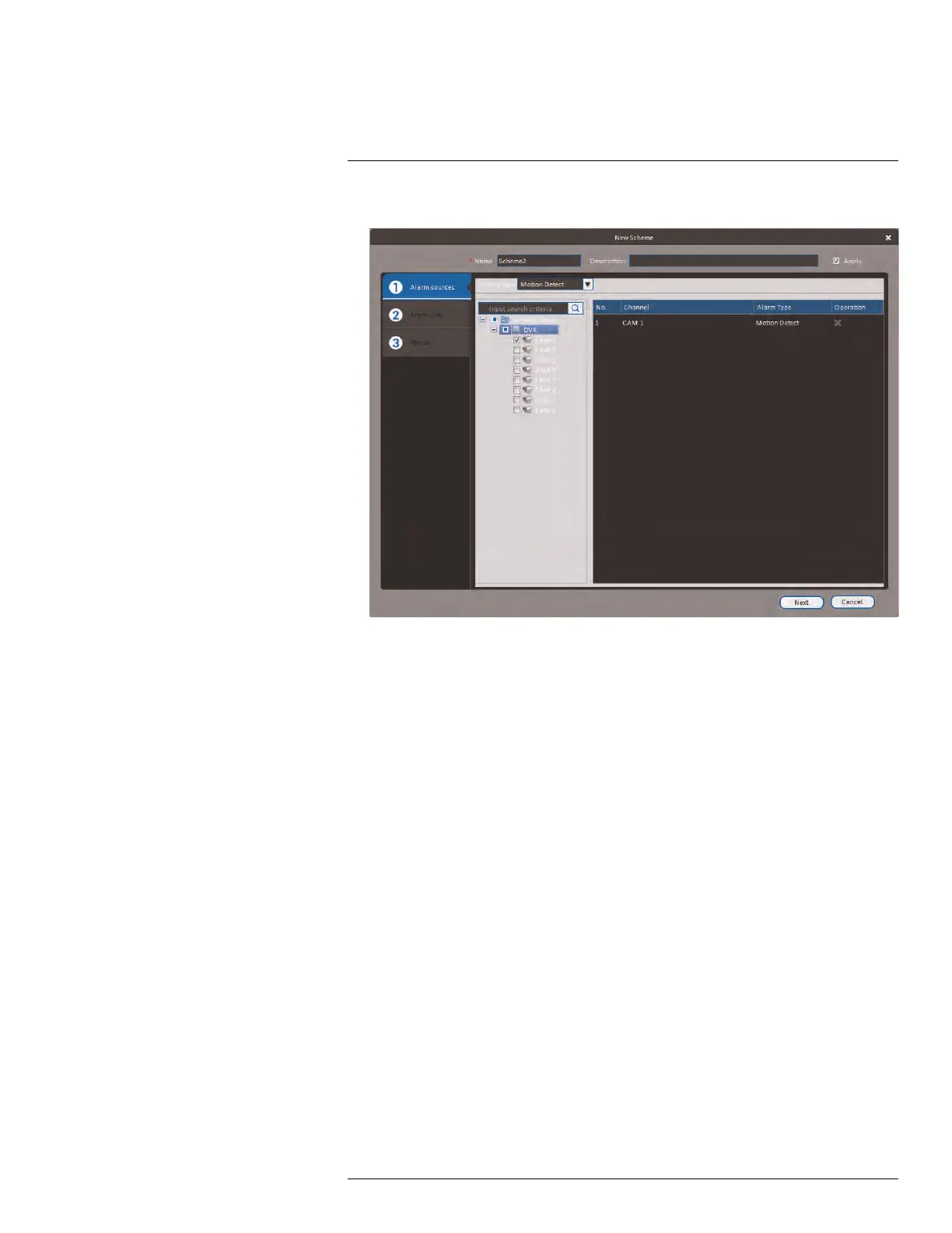 • Select the systems or channels you would like to trigger an alarm. Continuing the