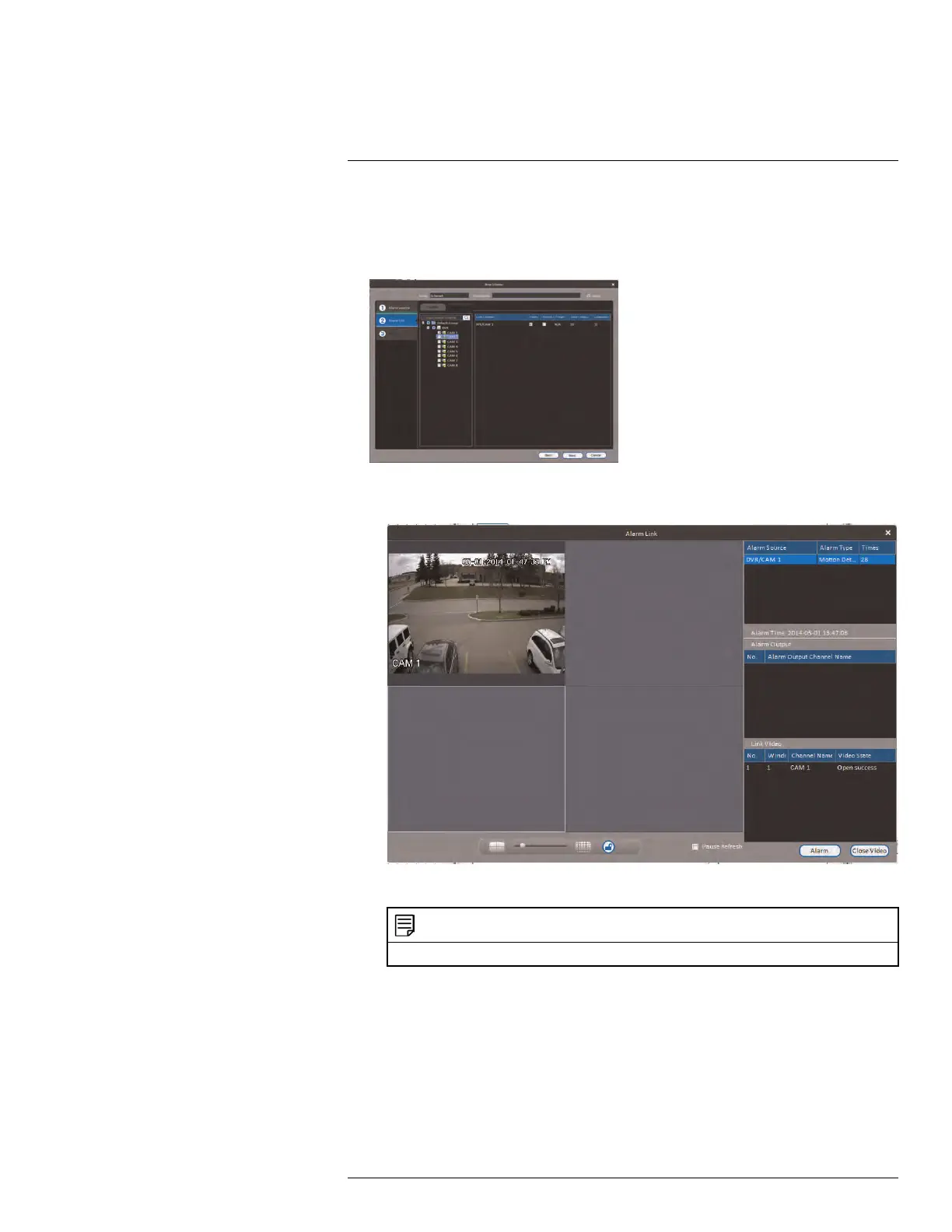 4. In the Alarm link menu, you set up the responses to alarms. Select the channels that